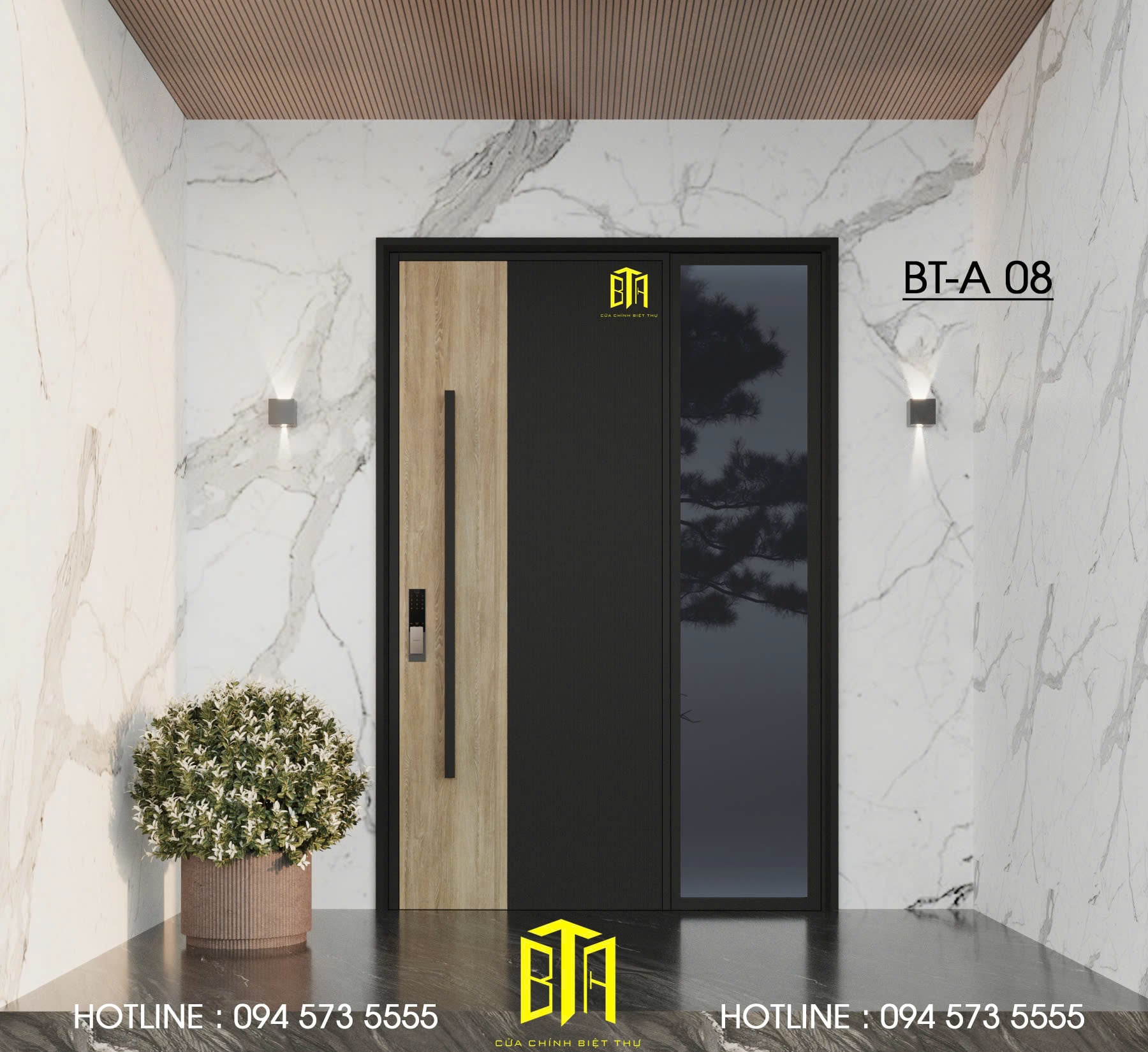 Cửa chính BTA-A được thiết kế hiện đại, chắc chắn và sang trọng, mang đến sự an toàn tuyệt đối cho ngôi